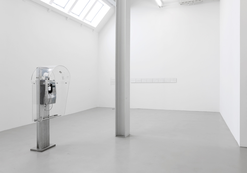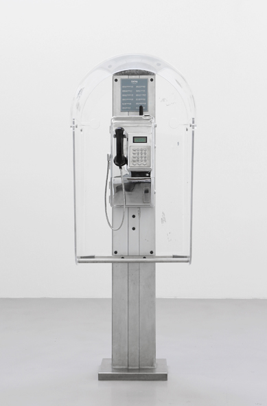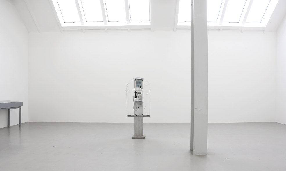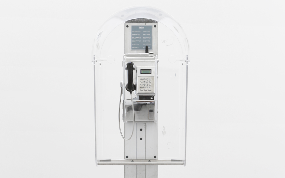The Communication Model 01 is a phonebooth. It is in working order and can be used by visitors. Inside the booth are several numbers posted. Those numbers can be dialed after using the coins which are available at the staff. The numbers are a collection of telephone-numbers from other public phones around the world. Visitors can call Beijing, New York, Tel-Aviv, Moscow, Sao Paulo, Seoul, Cannes, ...