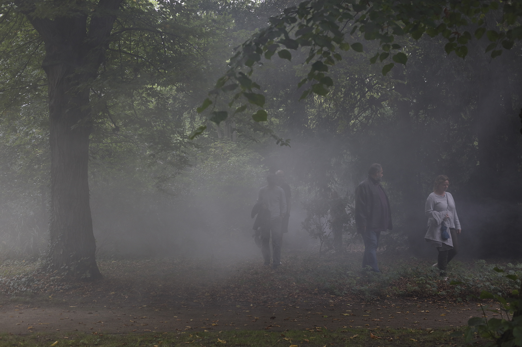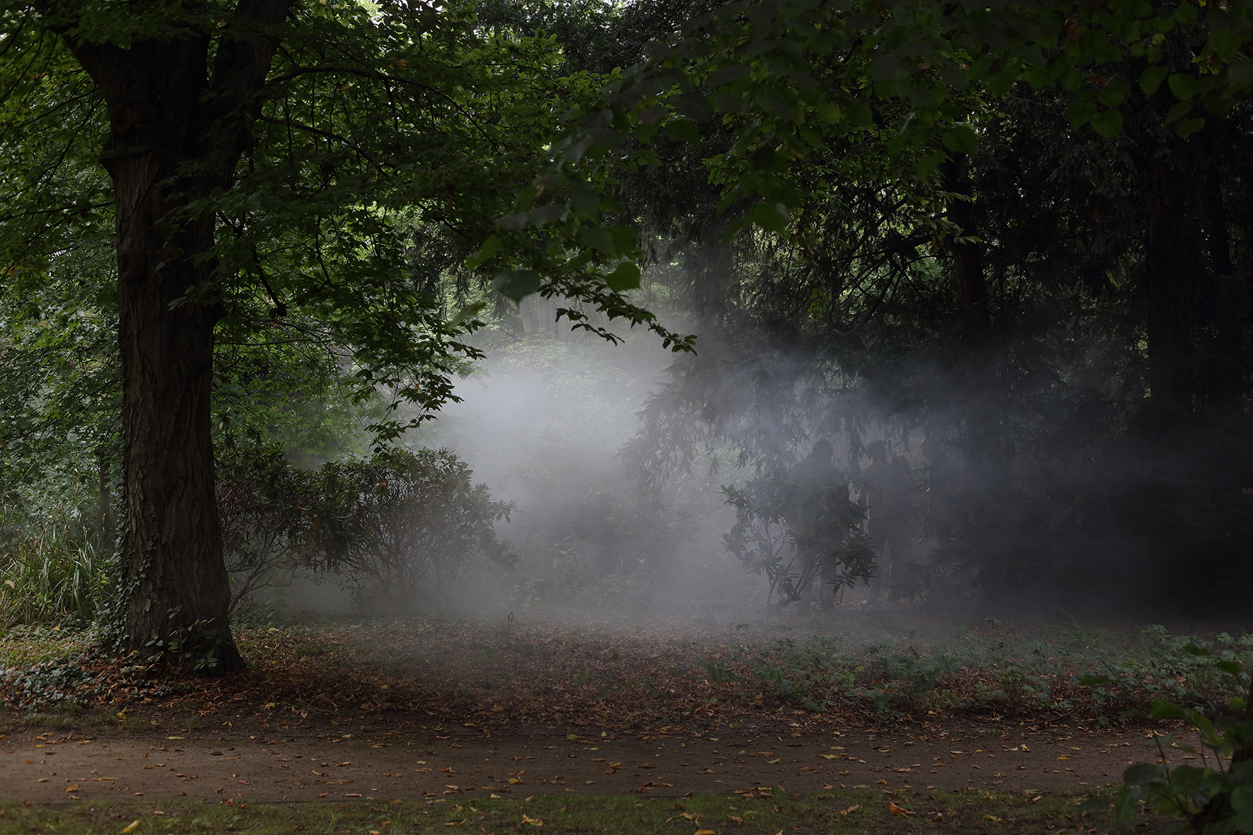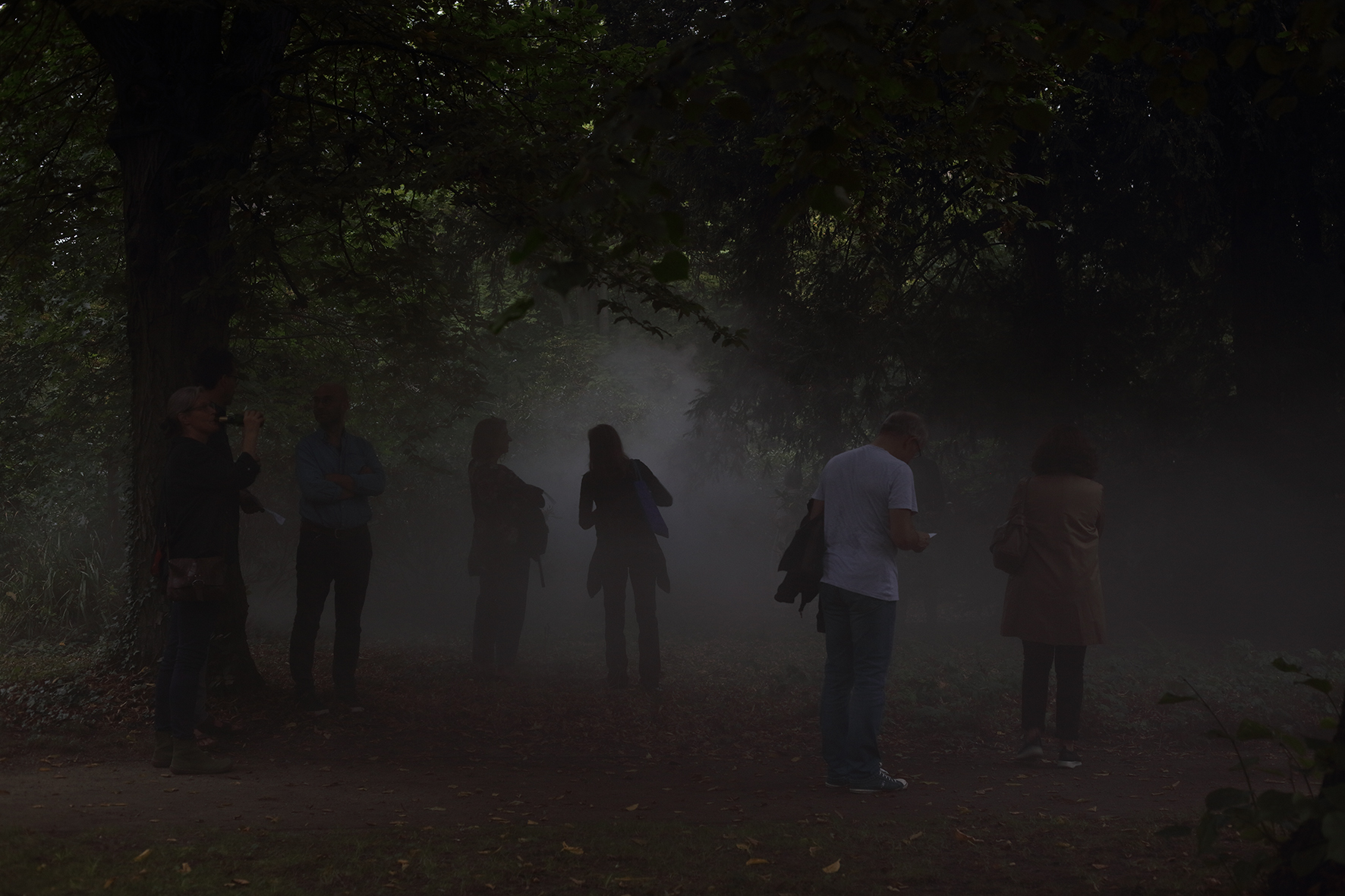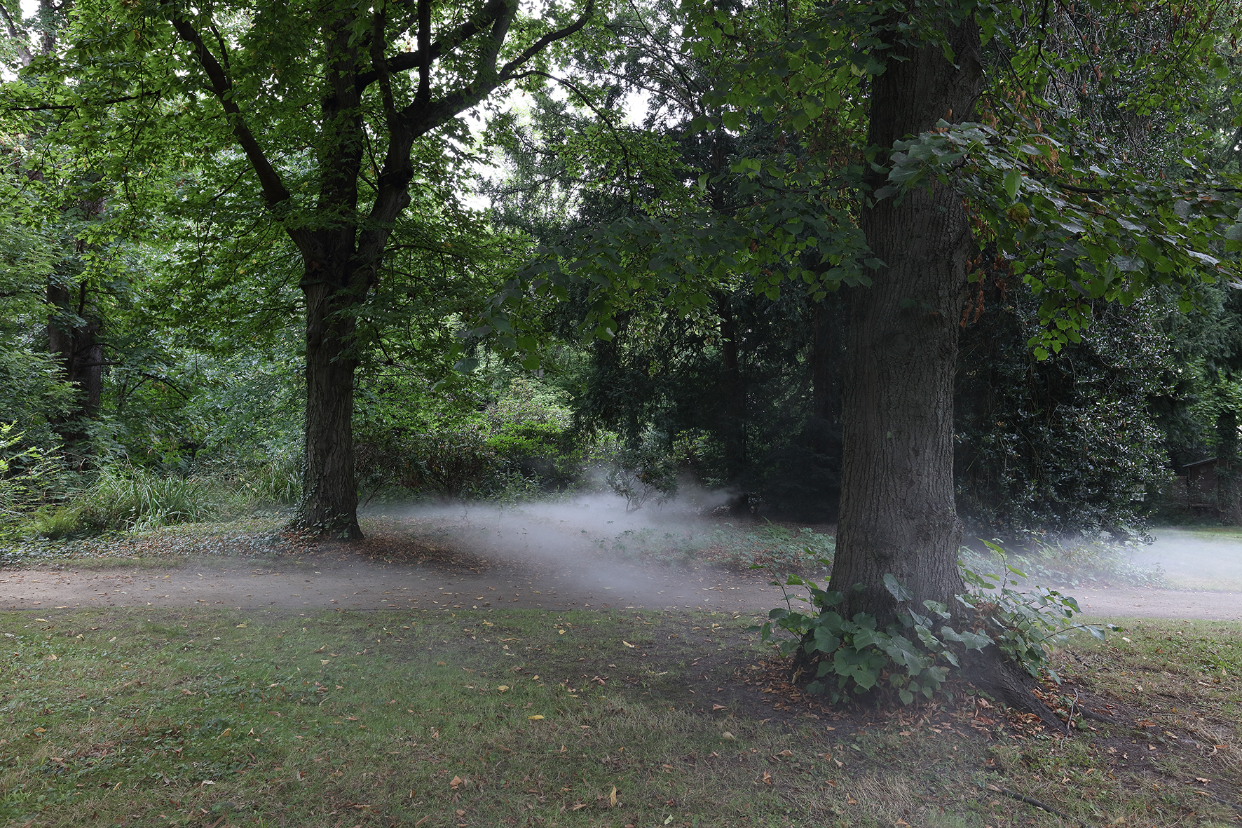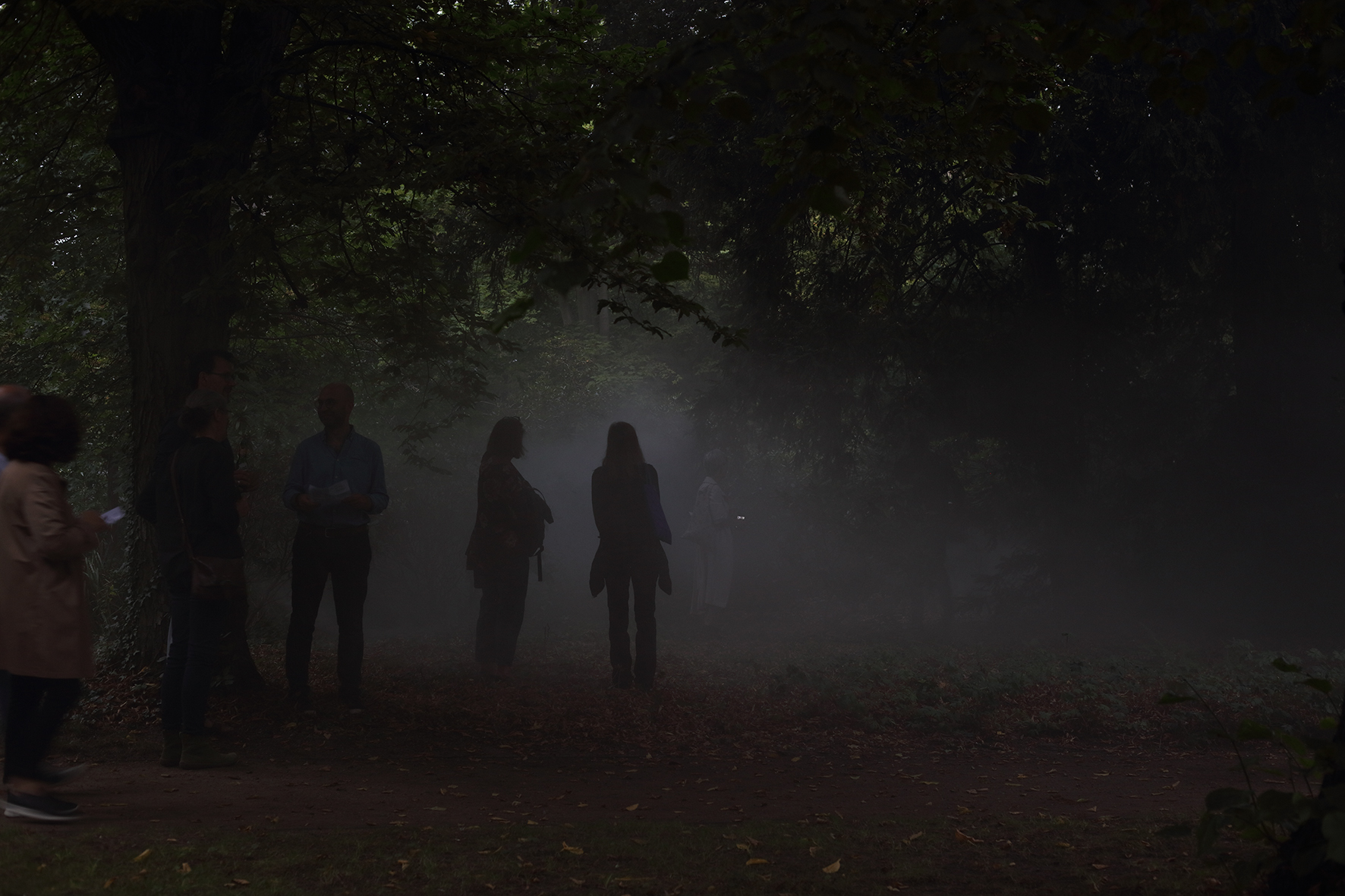 FADE is a sound-fog-installation and was presented the first time in Düsseldorf in 2022. A centered 360° loudspeaker plays songs from singers who speak endangered languages, this cultural heritage will disappear when the last singers are not able to sing anymore. Most of them I found in foggy morning situations in areas far away from cities. Hommage to the diversity of cultures.