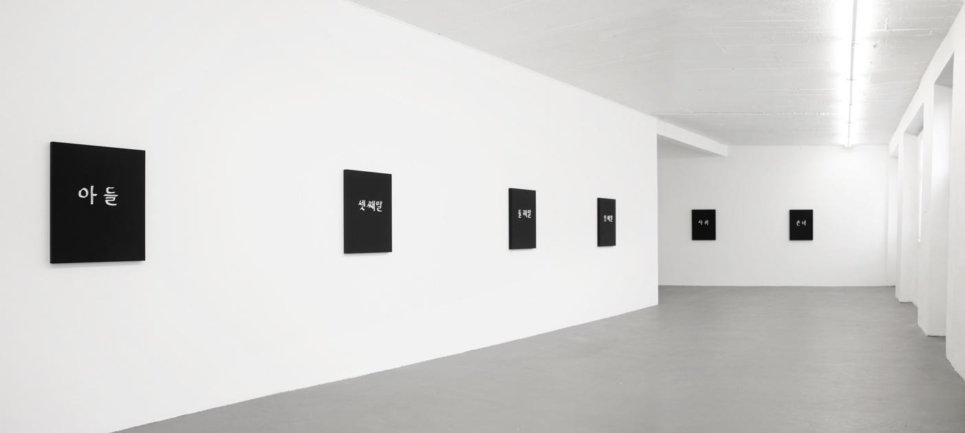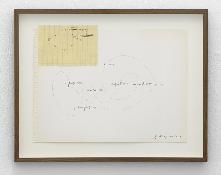 Family members are asked to describe each other (appearance, character) and to tell stories about their relatives; each person is represented by a speaker hidden behind a black canvas giving the family position (father, first-born, daughter etc.)