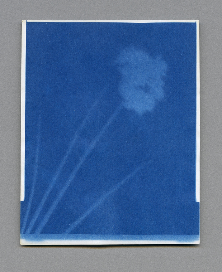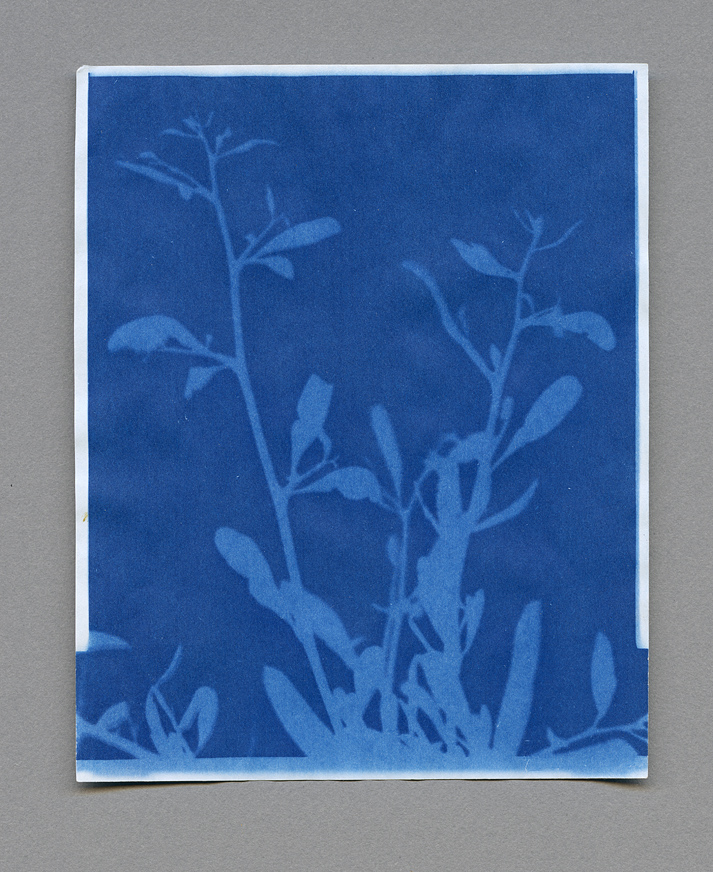SOLAR - COPY is a series which has been created in Gobi desert in Mongolia. Since the global warming is more and more changing our climate, the desert and Steppe in Mongolia let flowers grow in seasons of total dryness. With Cyanotopy-Paper shadows of plants have been copied to the paper and fixed as a symbol of time.