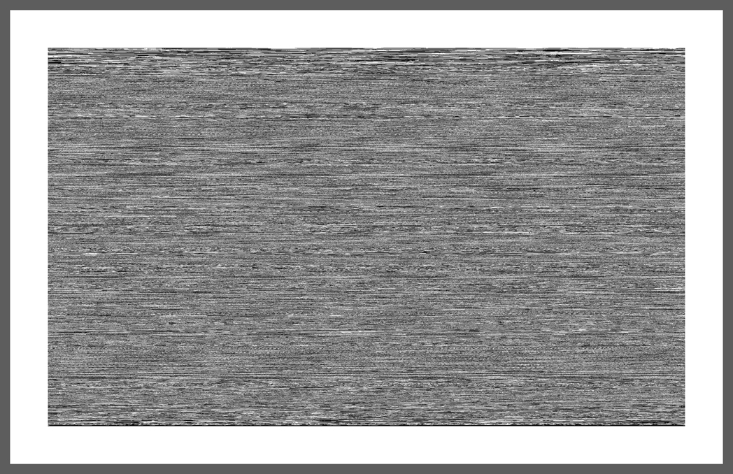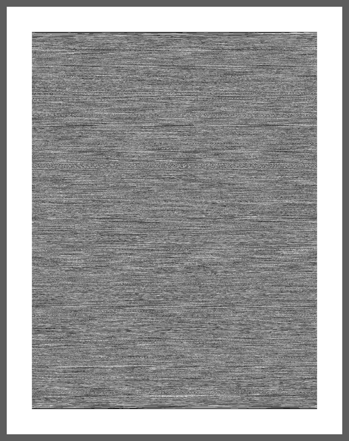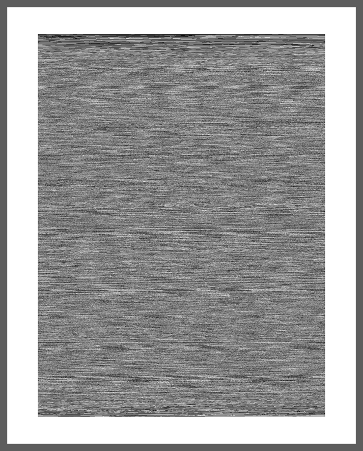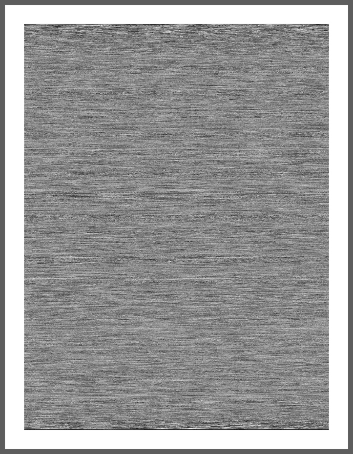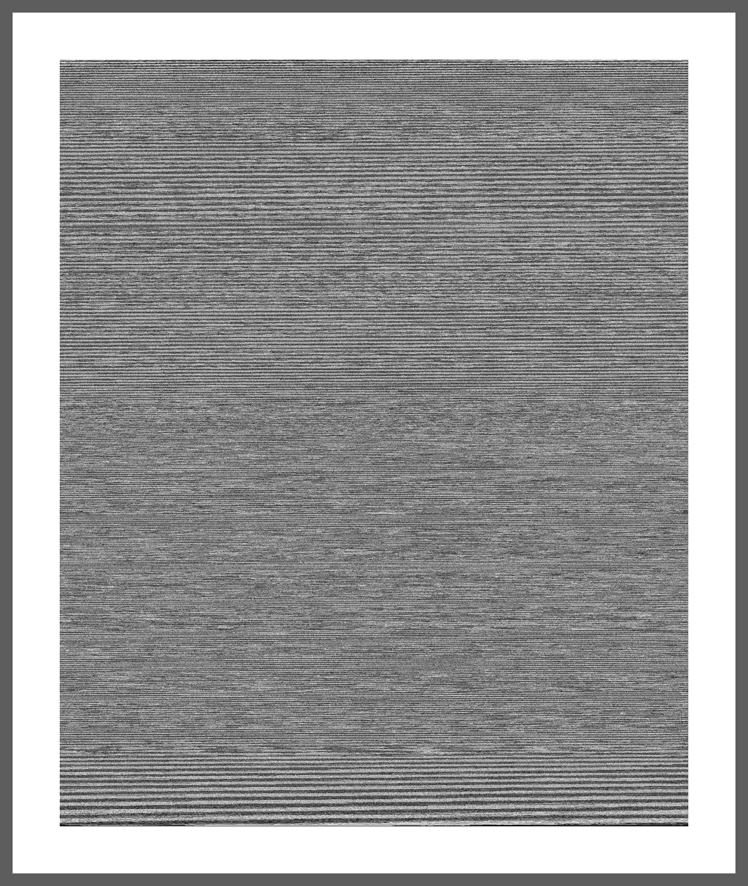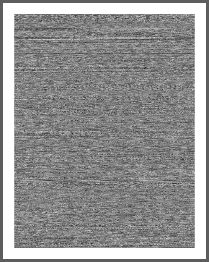 Transcription- Image ("part 3" decoded- image ), the transformation from audio to image "part 3" is part of the Transcription- Image series and another step of conceptual thoughts. The accoustic audio files from PART 2 are about descriptions of “reality” which makes them equal to an image but not in a visual way. The information is coded in language. "part 3" takes every of those descriptions and decode it back to a visual image, which is simply filtered through the computer software by black, white and grey tones. In a same way the result is a new code even it tries to decode. The size and structure of the image depends on the description from "part 2". The longer the person described, the bigger the decoded picture, the faster the person talked the darker the grey tones, the louder the person talked the more tight the little structure got.