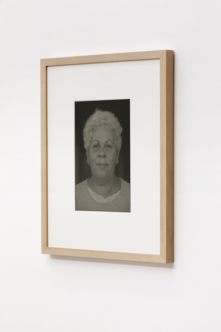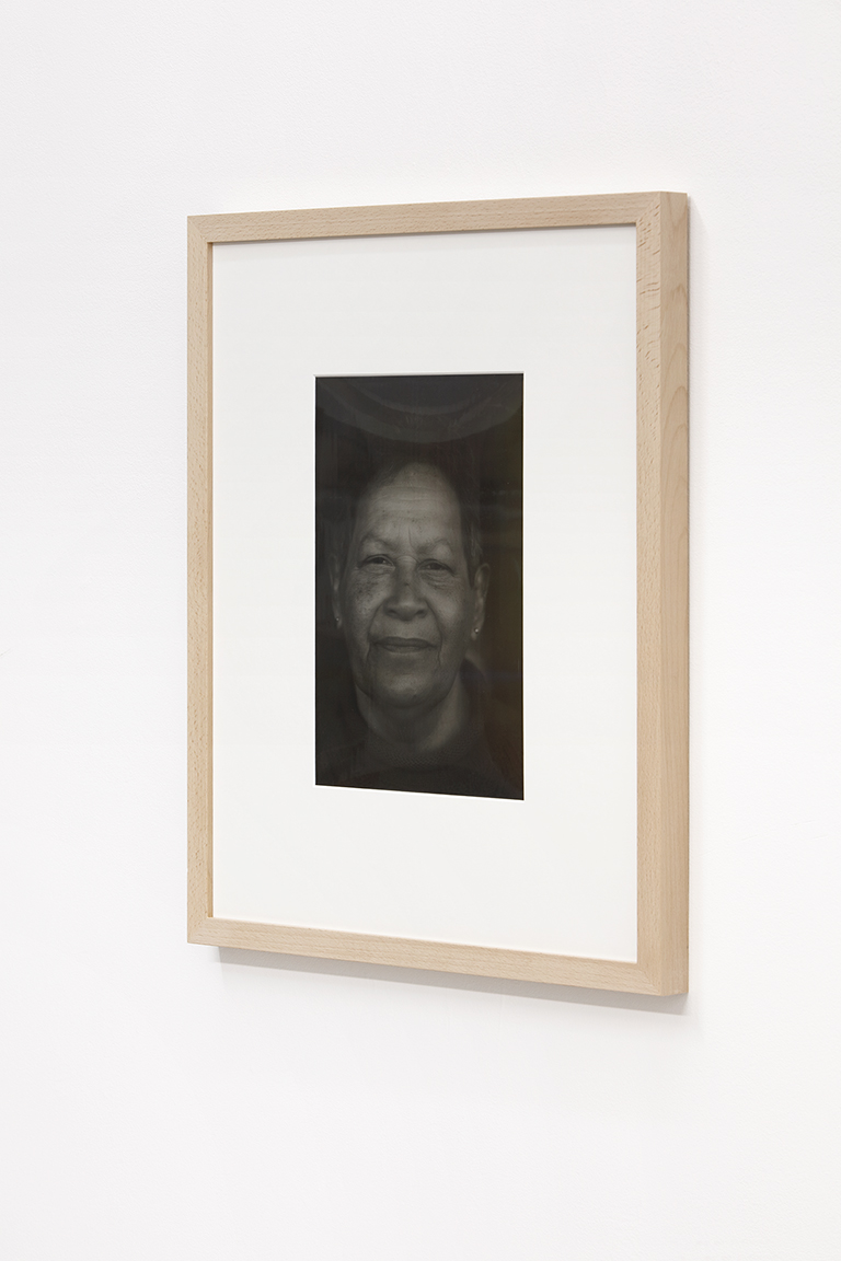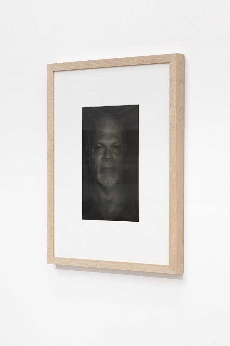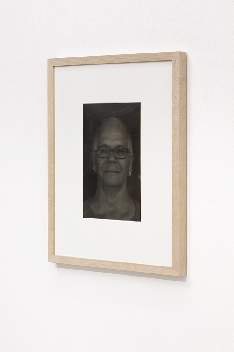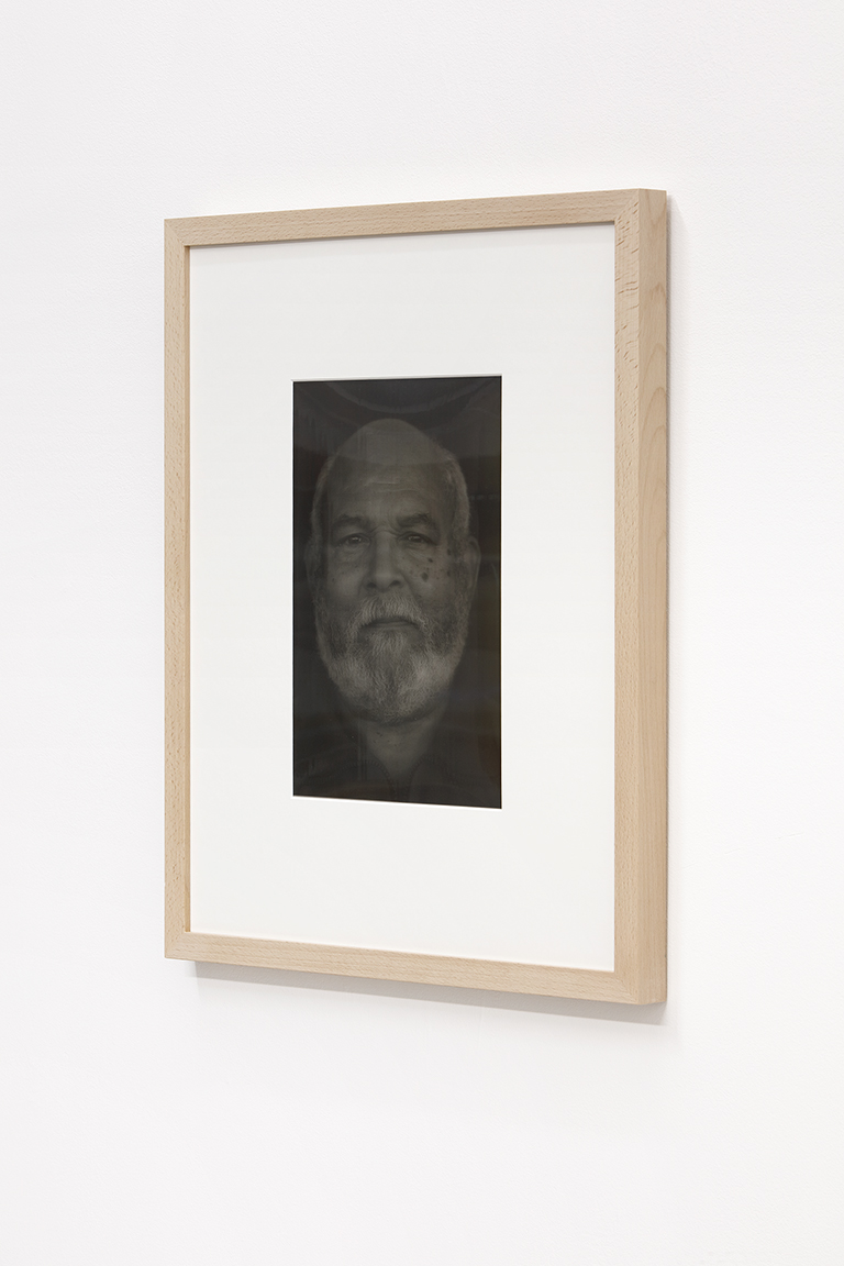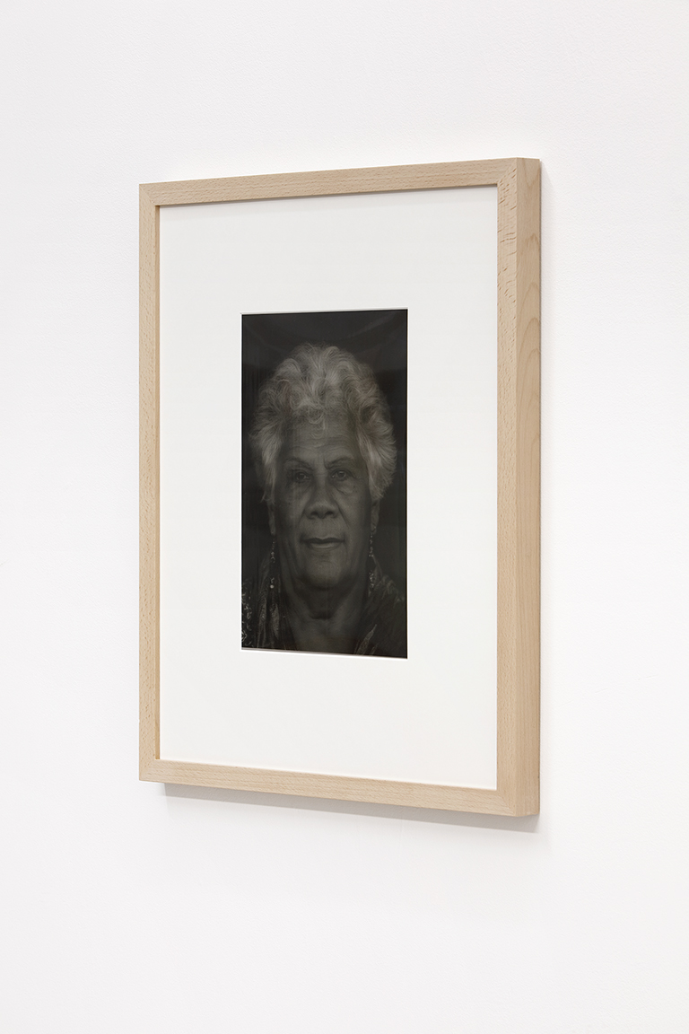 Unserdeutsch-FACES, consists of 12 individual portraits of the last Unserdeutsch speakers I met in Papua New Guinea and Australia in 2022. They are framed half-mirrored behind a Kinscem film and do not allow frontal eye contact. It is only possible to view them from a side angle, from the right or left.